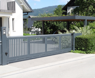 Sliding gates offer a great alternative to swing gates. Perhaps you prefer them, or more likely the layout of your property demands a sliding gate as an alternative. A sliding gate can be one complete gate leaf that slides open either manually or by automation or you may require Bi-Parting where a pair of gates slide apart due to space constraints or for a faster opening time on a busy carriageway. We offer Wooden, Steel, Aluminium, and Composite/PVC sliding gates. We will help you select the right system and style to suit your home or business. We will design, supply, and install your bespoke gate that will not only secure your property but also look fantastic. Sliding gates are ideal if you have limited return space on your drive where a standard double gate would not be able to open or for those wanting to gain the most room from their drive.